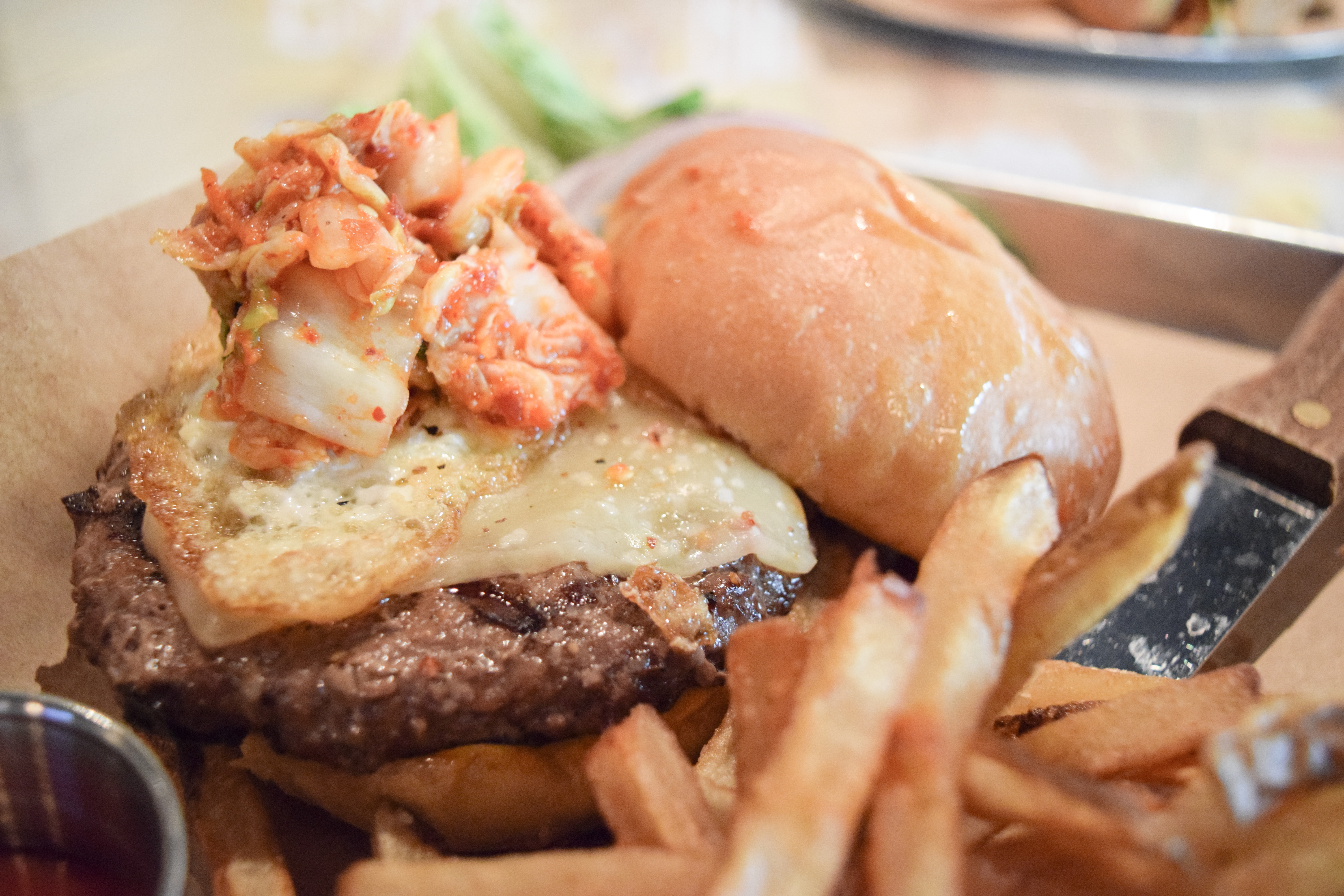 Another favorite among the frequent diners is The Pijiu Burger, a very juicy invention with cheese, a fried egg, beer-barbecue sauce, Sriracha-mayo sauce, and kimchi.