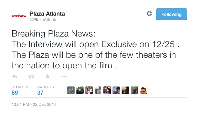 Earlier this morning “The Plaza Theatre” (off of Ponce) announced that they will be one of the few theaters in the country that will show the highly infamous movie “The Interview” featuring Seth Rogen & James Franco.