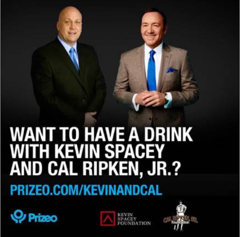 “The growth of the foundation since we formed it in 1999 has been tremendous and today we are helping underserved kids throughout the country with programming and by building our Youth Development Parks,” said Cal Ripken Jr. “You can do some terrific things on your own but great partnerships is how you really get top the next level. We are thrilled to be partnering with the Kevin Spacey Foundation on this very fun and unique event and utilizing the talents of the folks at Prizeo will help insure that people are aware of this terrific event and we raise significant funds to help kids in need.”