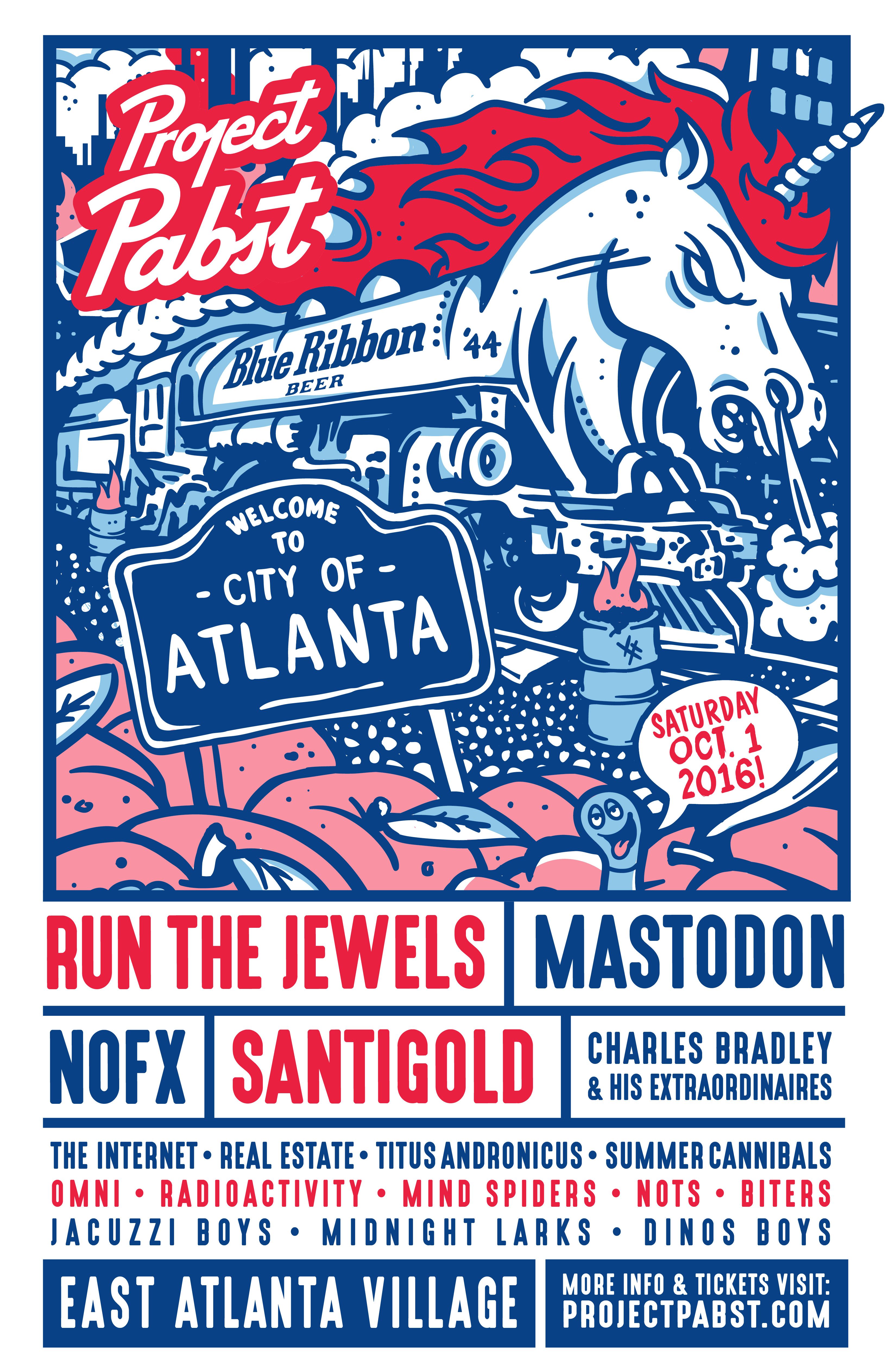 Project Pabst returns to Atlanta with their now stapled event, happening Saturday, October 1st. Right at the intersection of Flat Shoals & Glenwood Ave, major acts will bless the ears of East Atlanta’s finest at their third annual, 2016 festival. Run the Jewels, Mastodon, Santigold, Nofx, The Internet, and Real Estate to name a few.