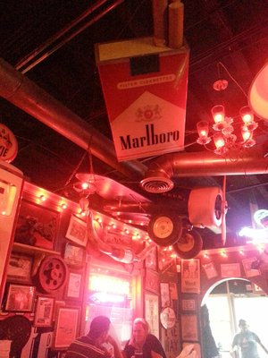 I arrived around 6:00, and though it wasn’t crowded – it was still busy. We were greeted immediately, asked to show our I.D.’s (you must be 18+ to eat there!), and asked where we’d like to sit – upstairs or inside. I’d eaten inside once before and I didn’t even know there was an upstairs to the place, so I chose to eat there. Now, if you’re wondering as to why you have to be 18 to even walk into the place, there is a lovely mural on the wall upstairs, along with various pictures located in the dining room that will probably answer that question for you. It’s definitely not a place for small children. Also, the restaurant allows cigarette smoking – which also explains the need for immediate age identification upon your entrance.