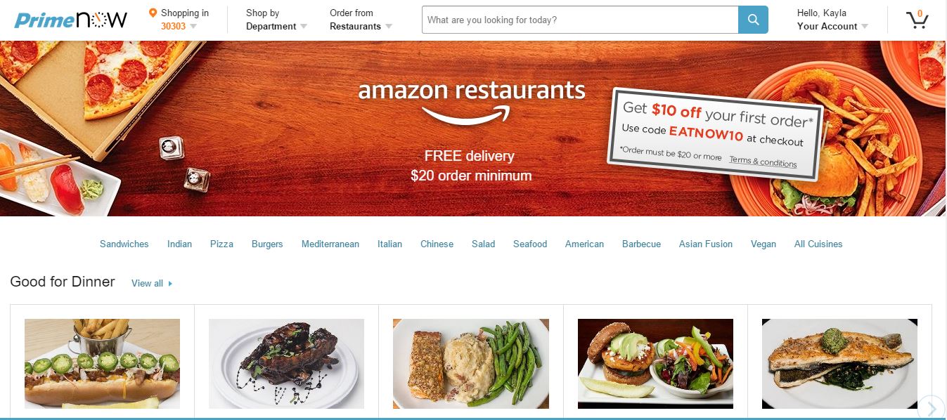Lucky Prime members in Atlanta will need to either download the Prime Now App or use the Prime Now site to enter their zip code in order to determine if their area is being serviced at this time.