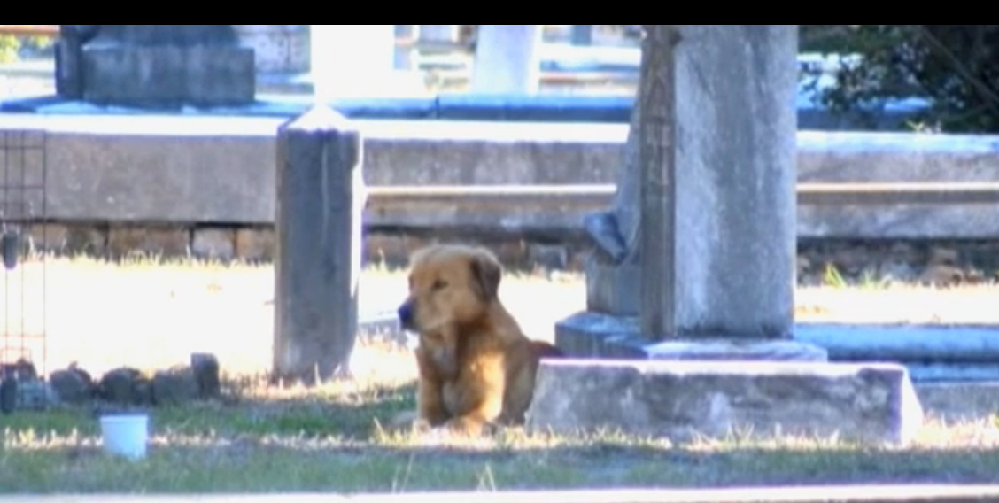 A stray golden retriever is keeping watch over her puppy’s grave at Laurel Grove Cemetery in Savannah, GA. She buried him earlier this week and hasn’t left his side since.