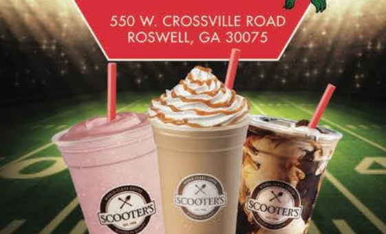 “All day, the entire Roswell High Football Team will be in the store (Around 20 at a time), greeting customers, smiling, having fun, possibly helping at drive thru menu board, handing out the drinks and even talking football,” explains Deanna Erwin, co-owner of the Scooter’s in Roswell and on Canton Road in East Cobb.