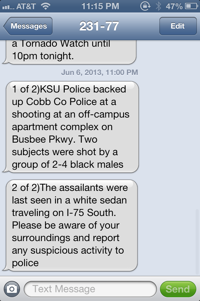 There has been a campus alert about a shooting that occurred around Kennesaw State University. These are all the details we’ve been provided so far.