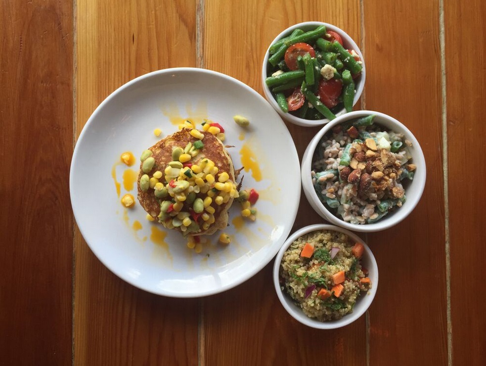 For a walk on the lighter side, the new offerings include a chilled farro and green bean salad with smoked almonds, diced cucumbers and mint yogurt dressing ($4.95) and jalapeño-cornbread cakes ($7.25), a gluten-free, vegan-friendly option served with sweet-corn edamame succotash.