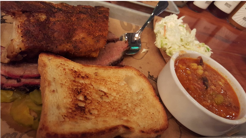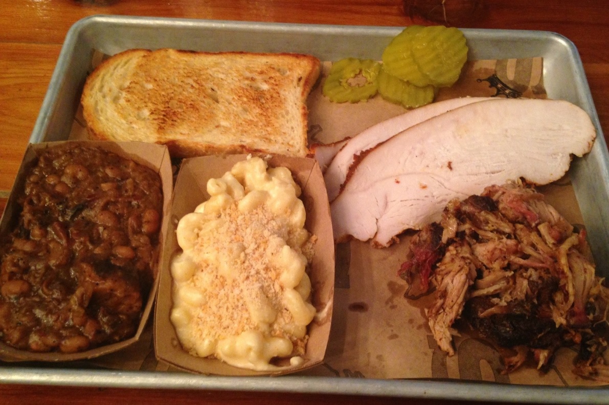 If you are the type of person that brings an appetite to a BBQ restaurant like I did, I took the advice of my server, Evan, and went with a “plate” that included their Angus beef brisket and ribs with a cherry cola ‘cue sauce that was tangy and zingy to my tastebuds. My wife also ordered a plate with sliced smoked turkey breast and a smoked pulled pork. She also tried the house mac and cheese, which featured a little kick and a hint of Parmesan cheese on top.