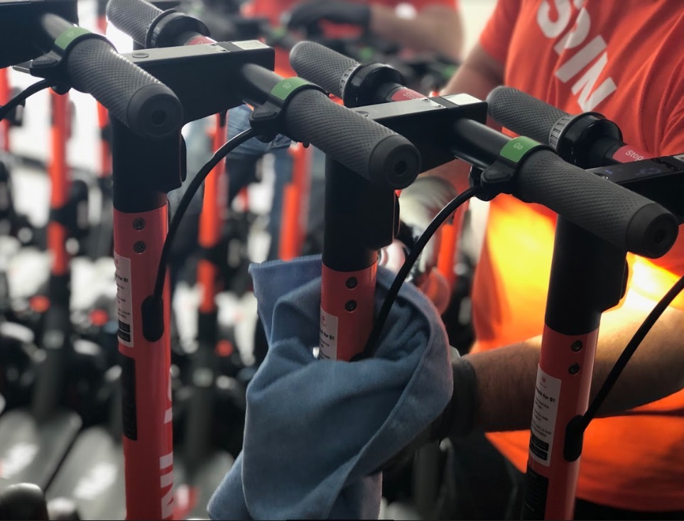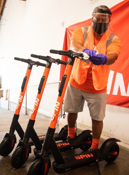 Among many of the other guidelines, Spin also requires its employees (always W-2 employees, no “gig workers”) to wear personal protective equipment (PPE) including gloves, face shields or safety glasses and cloth masks. Spin is informing riders about these updated safety and sanitization procedures in emails and in-app notifications. When outside using an e-scooter, Spin encourages riders to wear cloth masks, use a disinfectant wipe on the handlebars, wash their hands before and after riding or wear gloves as an extra precaution.