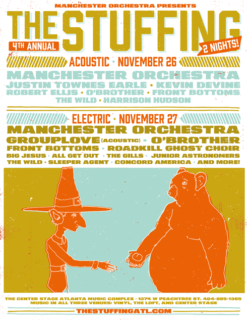 The Stuffing, Center Stage: Started by Manchester Orchestra, this will be a 2 day acoustic bonanza including an acoustic Grouplove set and Front Bottoms. It’ll surely be a fun time for all.