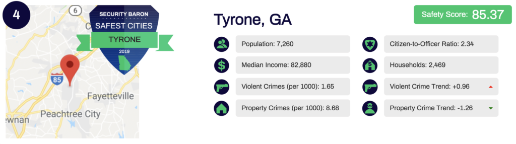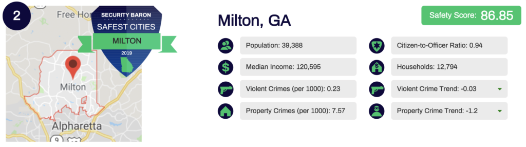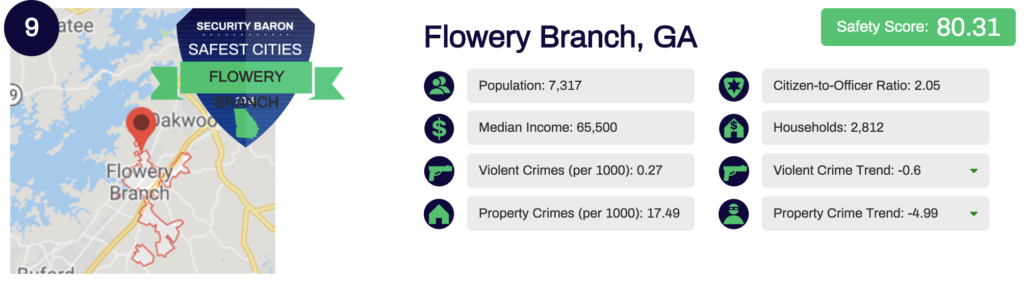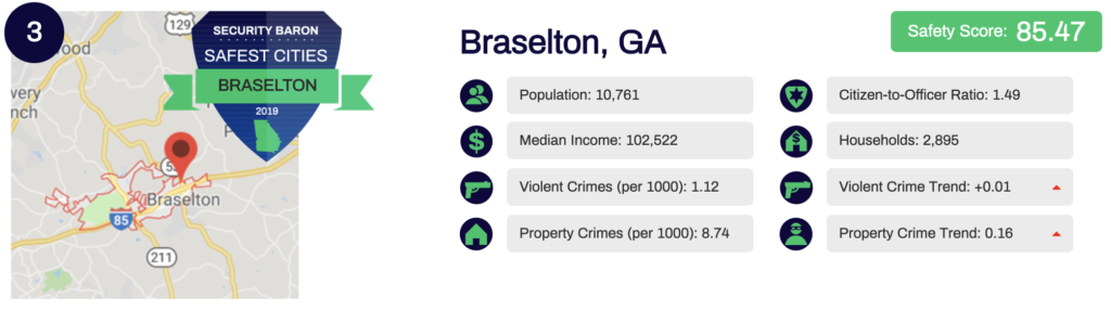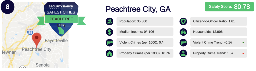 Security-based review, comparison and news site, Security Baron, analyzed FBI rankings of crime rates to find out what the top 10 safest cities are in Georgia, and what their safety score is.
