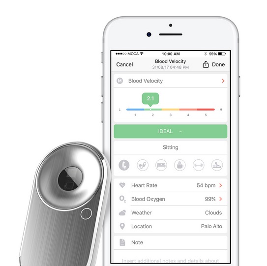 MOCAheart is a vital signs monitor right in your pocket. It is the all-in-one smart heart tracker that measures heart rate, blood oxygen, and pulse wave velocity with a quick scan of your thumbs.