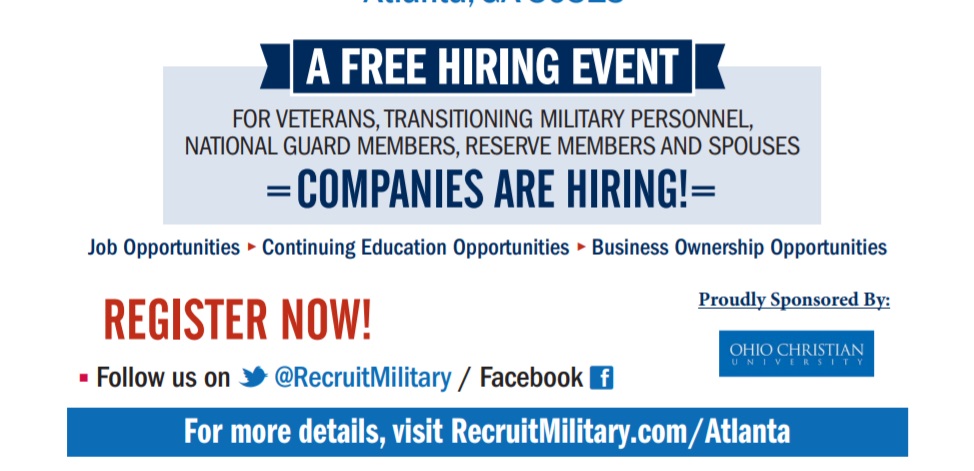 With more than 140 veteran and military spouse job fairs this year, RecruitMilitary offers veterans and military spouses the most opportunities of any organization to help facilitate their future career goals. This is a great opportunity to come out to live job fair and also do some networking.