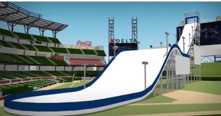 Imagine a 15-story steel scaffold jump structure that will be installed at SunTrust Park. 800 tons of snow will also be brought in to create a surface on which the world’s best freeskiers and snowboarders can perform. Athletes will drop into an approximately 40-degree in-run, then launch themselves off the jump at speeds up to 40 miles per hour to perform their biggest tricks while traveling up to 70 feet in the air.