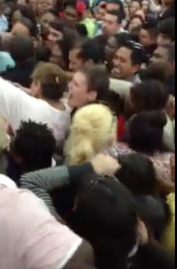 A video of the Thursday night scene (below) posted on YouTube shows a mob of customers at the Moultrie store pushing toward a display of cellphone boxes, their words drowned out over an unintelligible chorus of shouts. At one point, a man shoves his hand over a woman’s mouth as she begins to back away from the area and the woman appears to bite his hand in response.