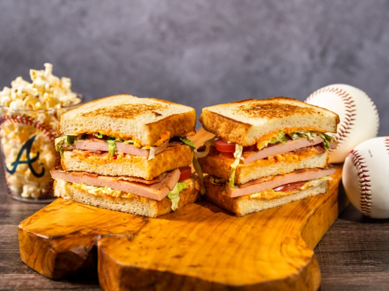 Georgia BLT – Bologna, butter lettuce, tomato, pimento cheese and garlic mayo on a brioche bun. Available at the 1871 Grille near section 141.
